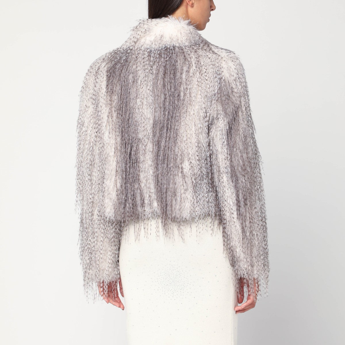 Eco fur by giuseppe di morabito characterized by classic lapels, hidden zip closure, and long sleeves.