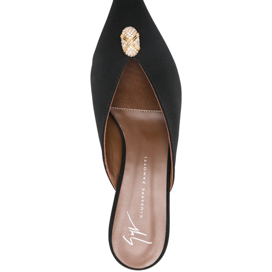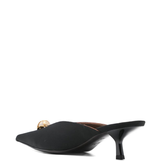 Black embellishment pointed toe heeled this piece comes complete with a protective dust bag. carole leather mules