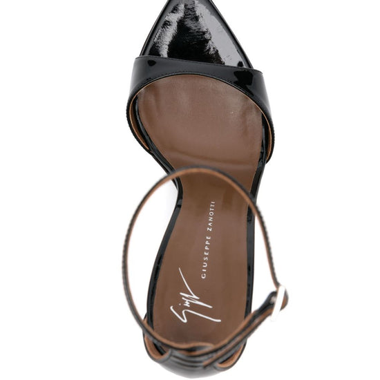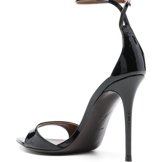 this piece comes complete with a protective dust bag. intriigo patent leather sandals size and fit - heel: 10.5 centimetres.