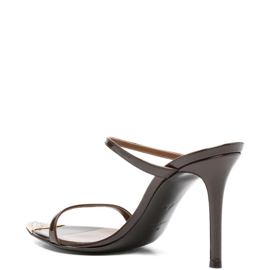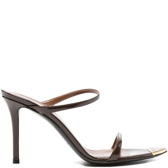 metallic-look toe cap intriigo patent leather sandals size and fit - heel: 10.0 centimetres.