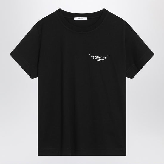 Givenchy black cotton t-shirt, featuring short sleeves, contrasting logo print on the chest and back, and ribbed crew neck. size and fit - model wears size s model measurements: height: 178 cm chest: 83 cm waist: 63 cm hips: 91 cm
