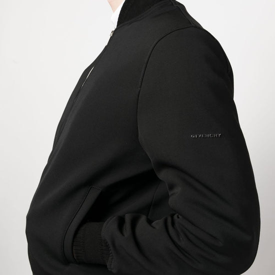 Wool logo lettering bomber jacket from givenchy featuring black, wool, logo lettering, front zip fastening, long sleeves, straight hem and two side pouch pockets. wool bomber jacket size and fit - this piece fits true to size. we recommend you get your regular size. model is 1,84m / 6ft 1in wearing size 48 (it)
