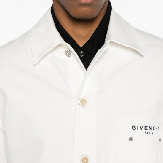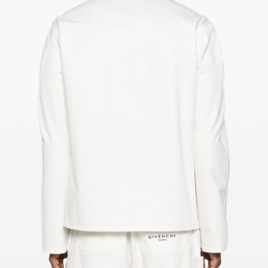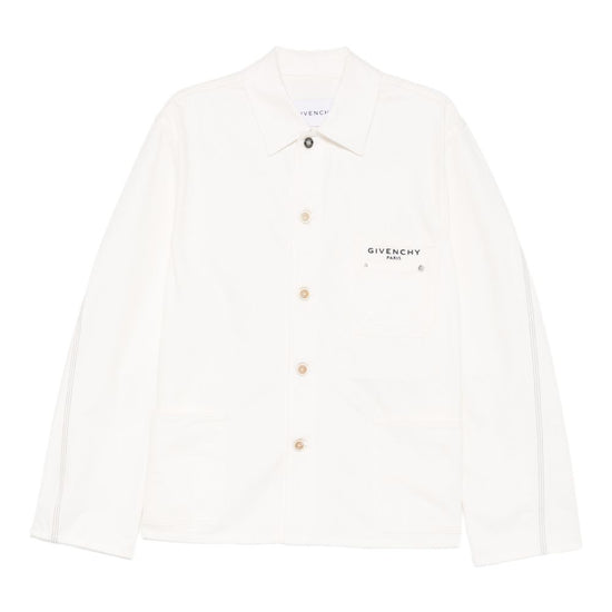 Off-white button fastening chest pockets long sleeves tonal stitching logo detail denim cotton jacket