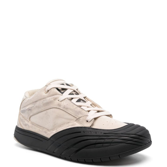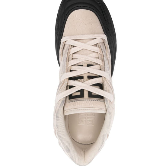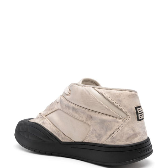 Light beige/black calf leather distressed effect nubuck panelling signature 4g motif logo patch at the tongue branded heel counter embossed logo to the rear logo-debossed ribbed rubber toecap round toe perforated toebox front lace-up fastening padded ankle mesh lining branded leather insole flat rubber sole skate sneakers size and fit - heel 1 in / 2,5 cm; platform 0,8 in / 2 cm