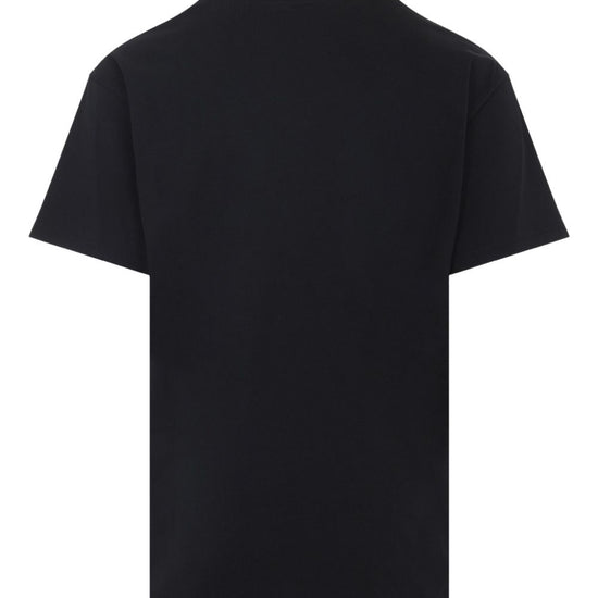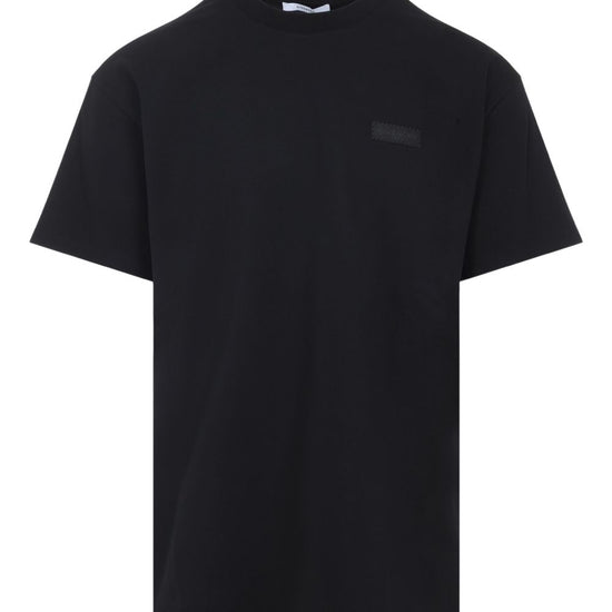 Black cotton patch detail short sleeves round neck tonal stitching logo cotton t-shirt