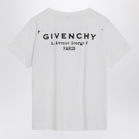 White cotton givenchy t-shirt, featuring short sleeves, contrasting logo print on the chest and back, and ribbed crew neck. size and fit - model wears size s model measurements: height: 178 cm chest: 83 cm waist: 63 cm hips: 91 cm