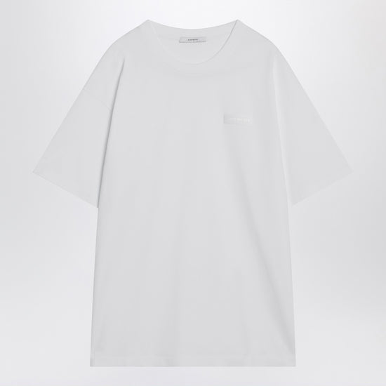 White cotton givenchy t-shirt, featuring short sleeves, a patch with logo lettering on the chest, and a ribbed crew neck. size and fit - model wears size l model measurements: height: 187 cm chest: 102 cm waist: 76 cm hips: 92 cm