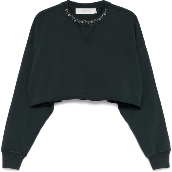 Golden Goose Cropped Cotton Sweatshirt with Crystals on the Front