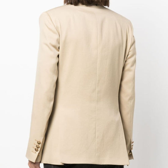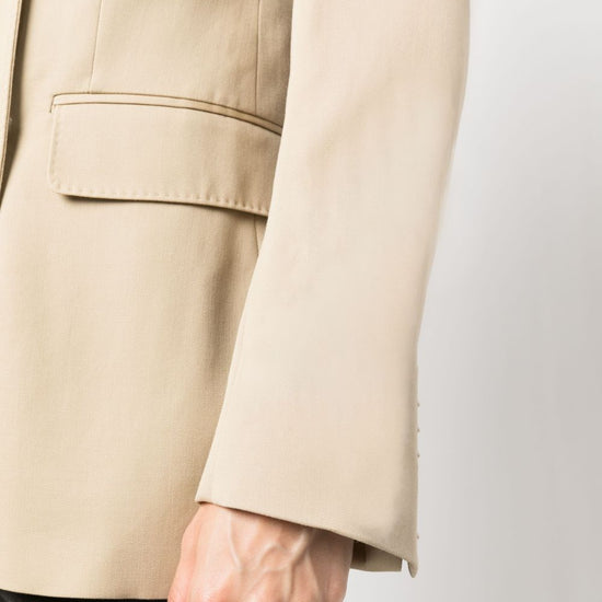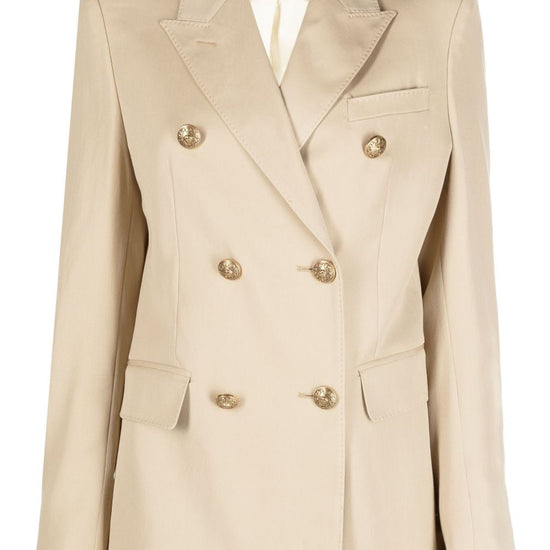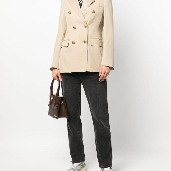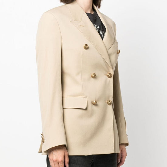 Sand beige virgin wool peak lapels peak lapels double-breasted button fastening buttoned cuffs long sleeves chest welt pocket two front flap pockets d/p golden double-breasted balzer jacket size and fit - this piece fits true to size. we recommend you get your regular size. model is 1,75m / 5ft 8in wearing size 40 (it)