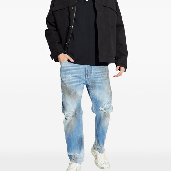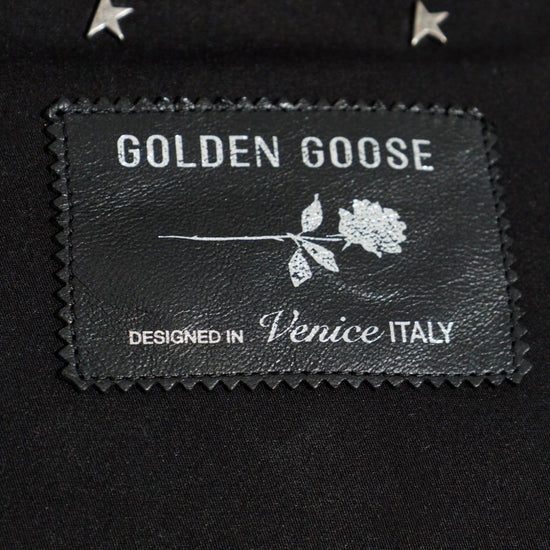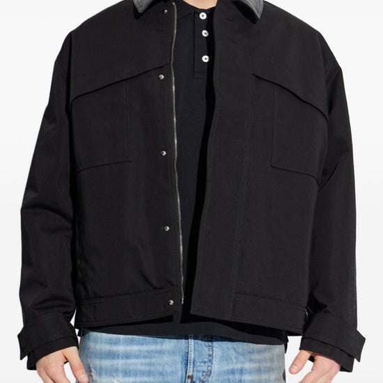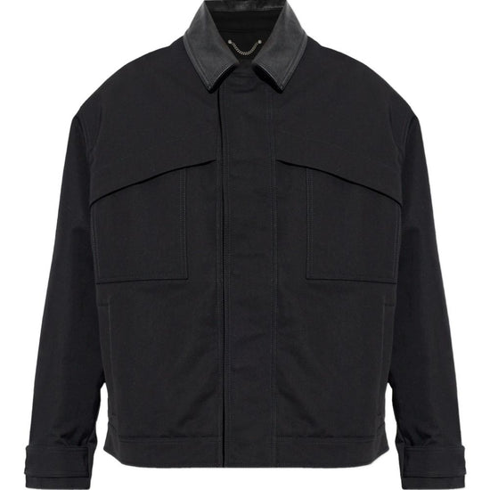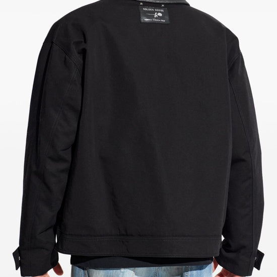 Black cotton leather collar front pockets silver-tone studs zip fastening padded jacket