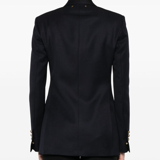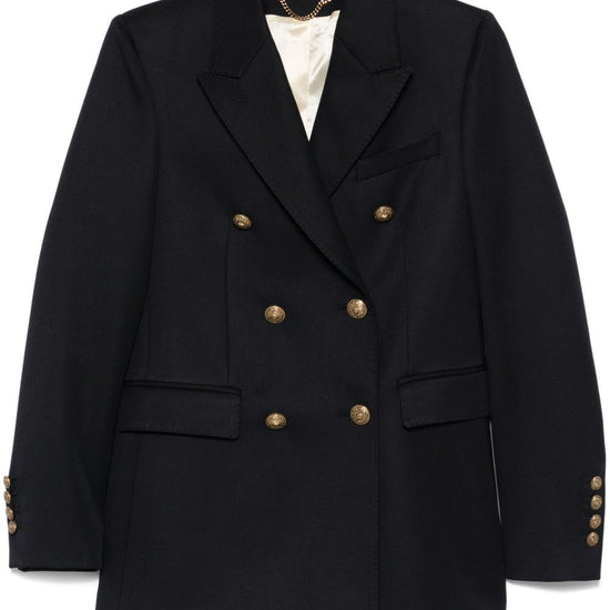 buttoned-cuff sleeves wool double-breasted blazer jacket
