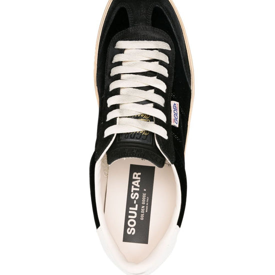 Black velvet embroidered logo to the side mini logo tag distressed effect faded effect round toe front lace-up fastening logo patch to the front contrasting branded heel counter flatform sole branded insole french terry lining soul-star leather sneakers