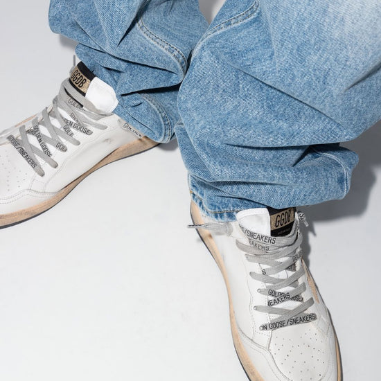 White distressed effect signature star patch to the sides perforated detailing logo patch at the tongue round toe front lace-up fastening flat rubber sole ball star leather sneakers size and fit - heel 1,2 in / 3 cm platform 0,6 in / 1,5 cm