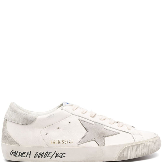 Off-white calf leather perforated detailing signature star patch to the sides logo patch at the tongue contrasting branded heel counter round toe front lace-up fastening branded insole flat rubber sole super-star leather sneakers size and fit - heel 1,2 in / 3 cm; platform 0,6 in / 1,5 cm