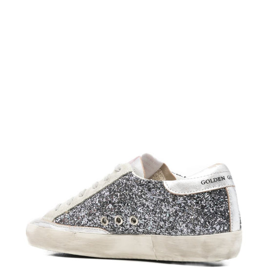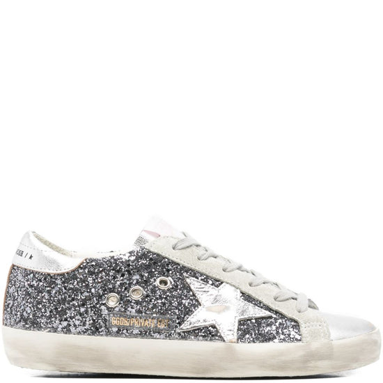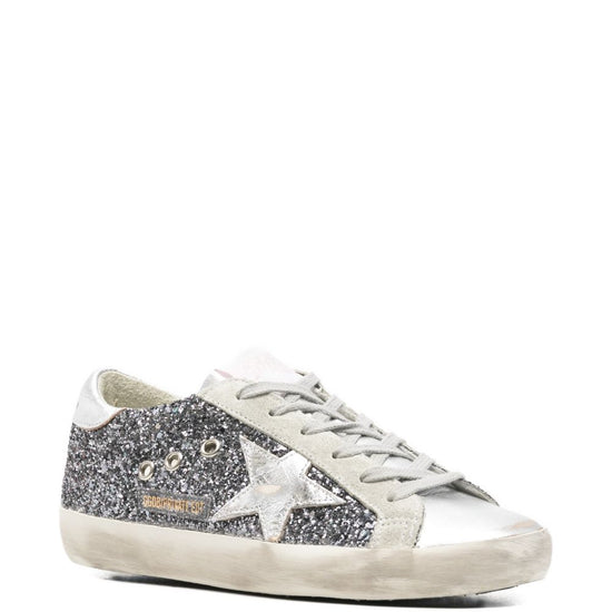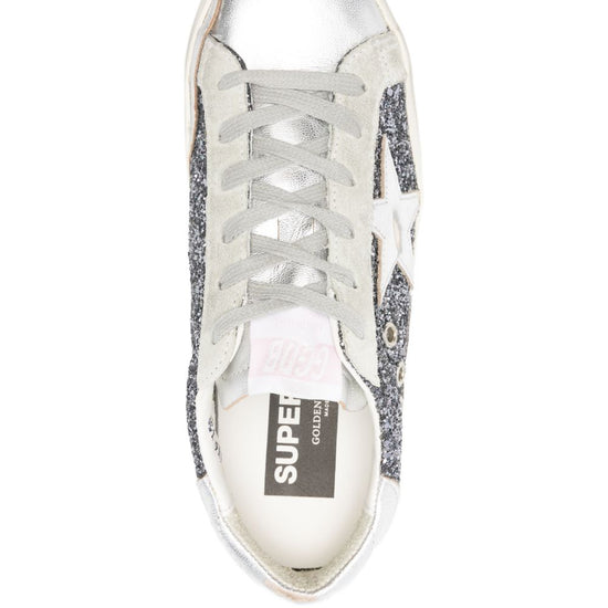 Grey glitter embellishment star motif lace-up fastening round toe super-star leather sneakers