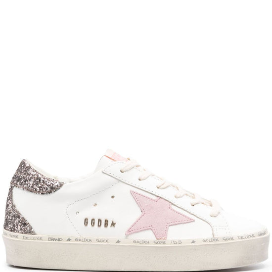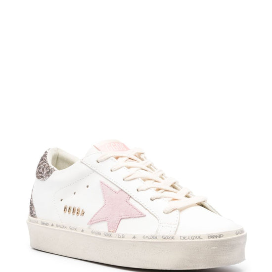 White light pink calf leather glitter detailing signature star patch to the sides perforated detailing contrasting heel counter logo patch at the tongue logo at the sole tonal stitching round toe front lace-up fastening branded leather insole flatform sole this piece comes complete with a protective dust bag. hi star leather sneakers