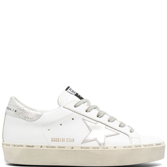White star detail platform sole lace-up fastening round toe silver-tone heel counter hi star leather sneakers