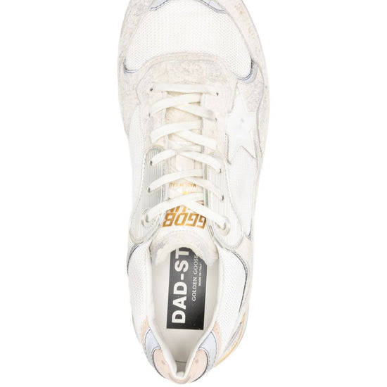White silver-tone detail panelled design lace-up fastening logo patch rubber sole running dad sneakers