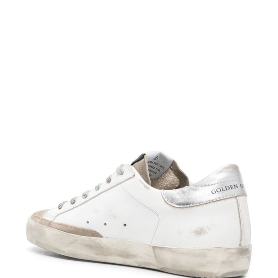 Cloud white bovine leather signature star patch to the sides metallic heel counter logo patch at the tongue round toe front lace-up fastening branded insole flat rubber sole super-star leather sneakers size and fit - heel height 2cm.