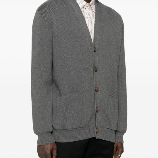 ribbed trim cotton v-necked cardigan
