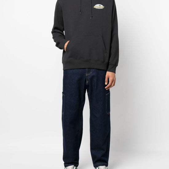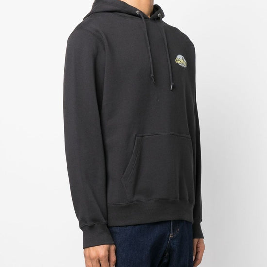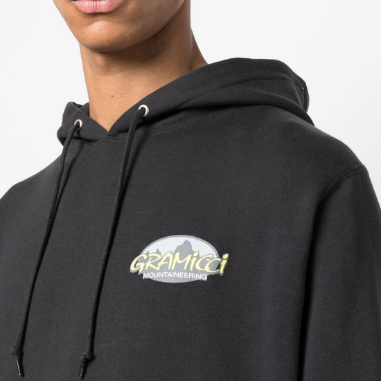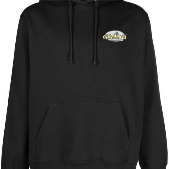 Logo-print cotton hoodie from gramicci featuring black, stretch-cotton, logo print at the chest, drawstring hood, long sleeves, ribbed cuffs and hem, front pouch pocket and straight hem. c/logo logo cotton hoodie size and fit - this piece fits true to size. we recommend you get your regular size. model is 1,84m / 6ft 1in wearing size m