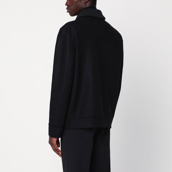 Harris wharf london jacket in black virgin wool, characterized by a front closure with double zip, long sleeves, two side pockets, and a shirt collar. size and fit - model wears size 50 it model measurements: height: 187 cm chest: 102 cm waist: 76 cm hips: 92 cm