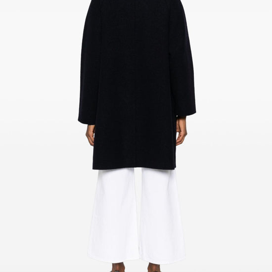 Navy blue wool fabric single button fastening notched lapel wool single-breasted coat