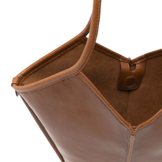 Brown top handles internal logo label panelled construction this piece comes complete with a protective dust bag. calella leather shoulder bag