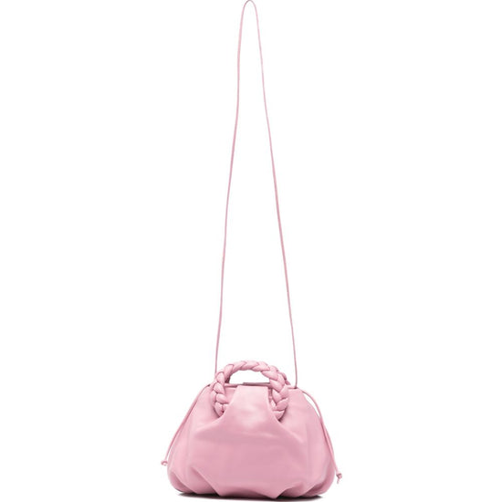 Pink braided top handles drawstring detail shoulder strap this piece comes complete with a protective dust bag. bombon leather handbag