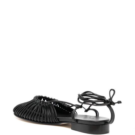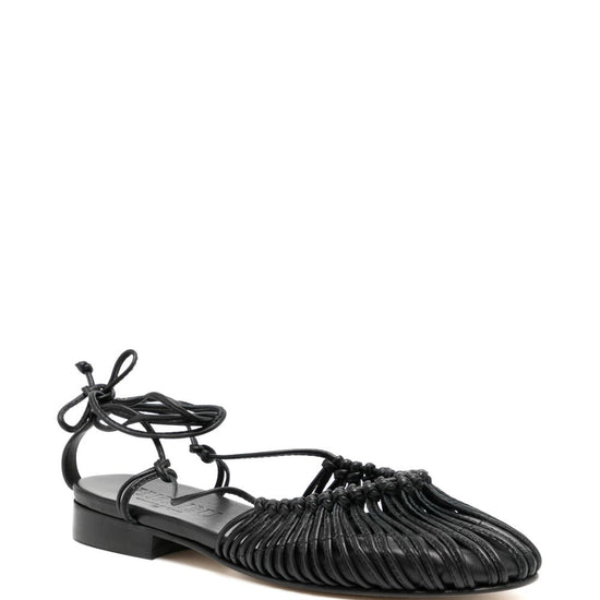 Black lambskin knotted construction tie-fastening ankle strap round toe branded leather insole stacked rubber sole mantera leather ballets size and fit - heel 0,7 in / 1,8 cm