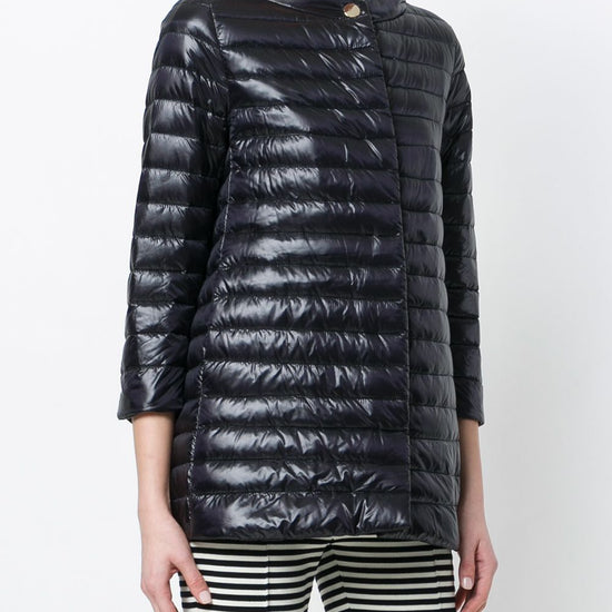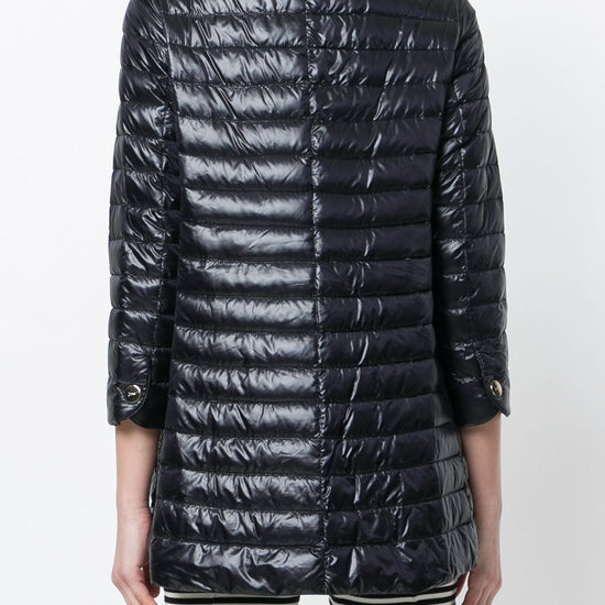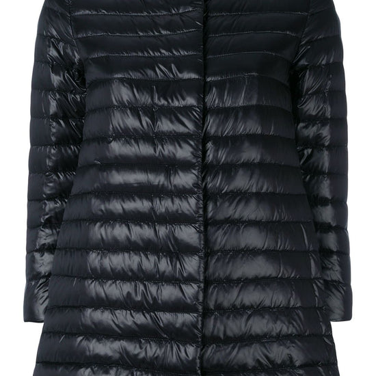 Herno’s revolutionary production processes operate alongside traditional methods and the result is an inimitable mix of materials with a unique contemporary feel. this lightweight padded jacket is finished with a band collar, a snap button closure and long sleeves, falling with a slight flare to a mid-length, finished with side slip pockets, quilted and filled with feather down. nylon midi down jacket size and fit - this piece fits true to size. we recommend you get your regular size. model is 1,75m / 5ft 8in wearing size 40 (it)