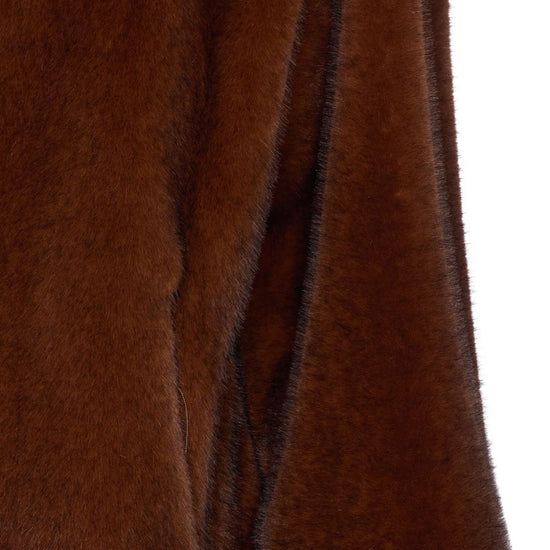 Brown faux fur zip closure long sleeves drawstring hood faux fur jacket