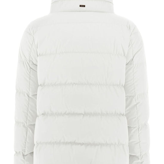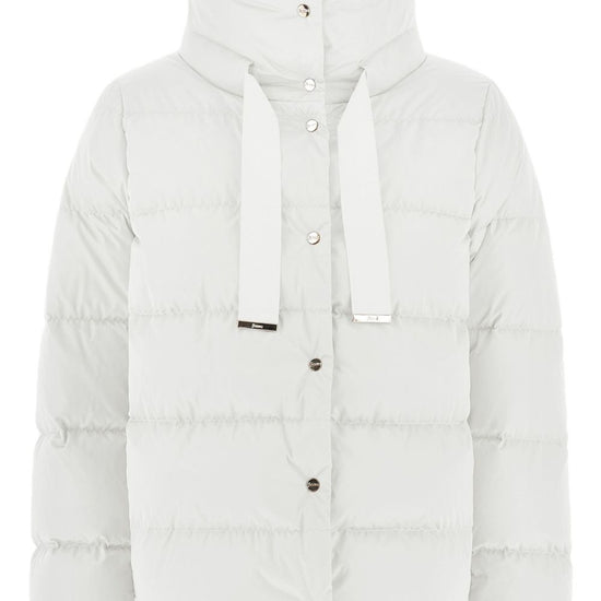White quilted design high neck snap button fastening long sleeves short down jacket
