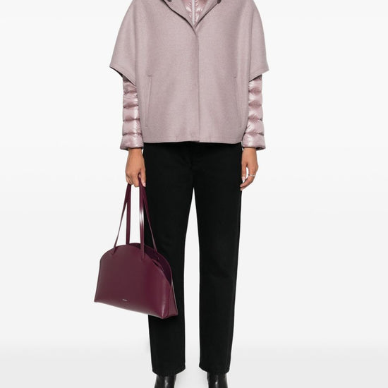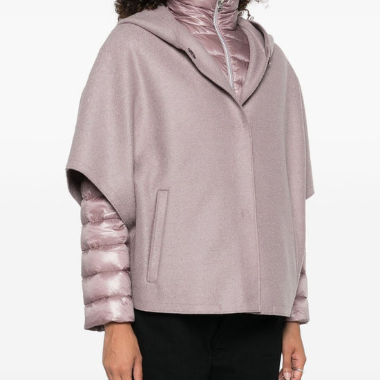 Purple hooded neckline quilted internal layer zip fastening welt pockets  hooded puffer jacket