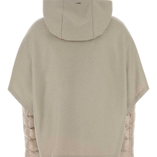Long-sleeved cape, high neck and zip fastening. padded cape