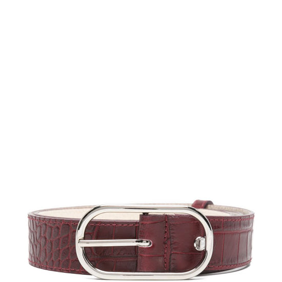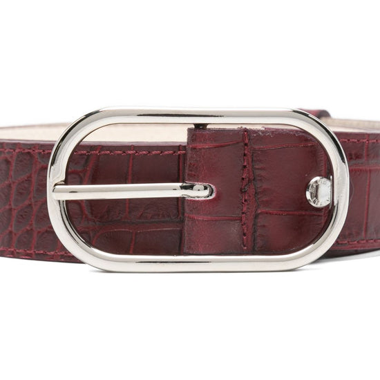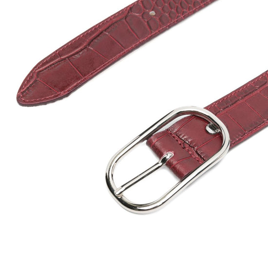 Red leather silver-tone hardware croc-embossing pin buckle hannah leather belt