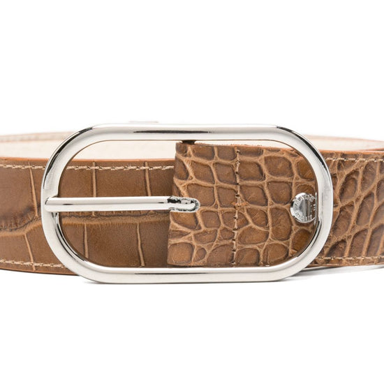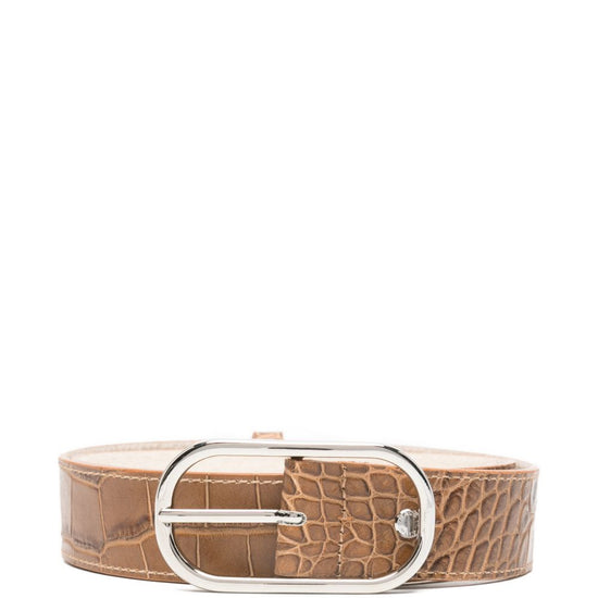 Brown crocodile embossed leather silver-tone hardware oval buckle hannah leather belt