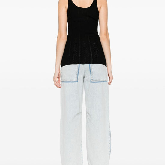Black ribbed trims sleeveless scoop neck merino wool hedra wool tank top