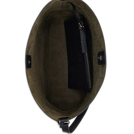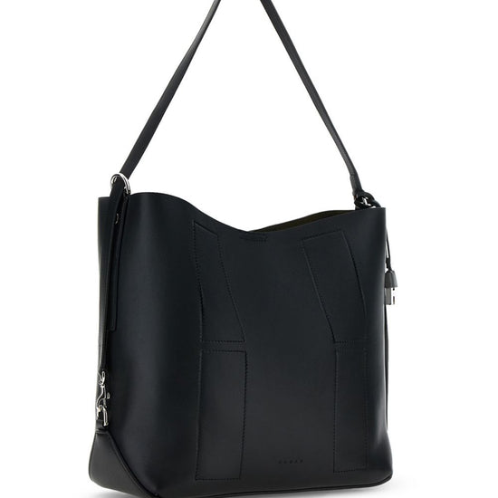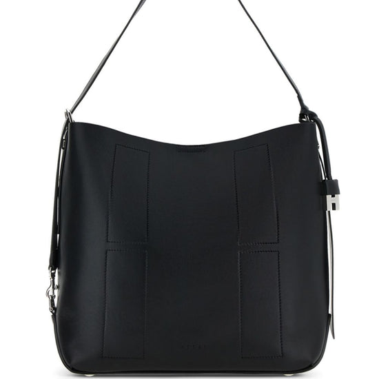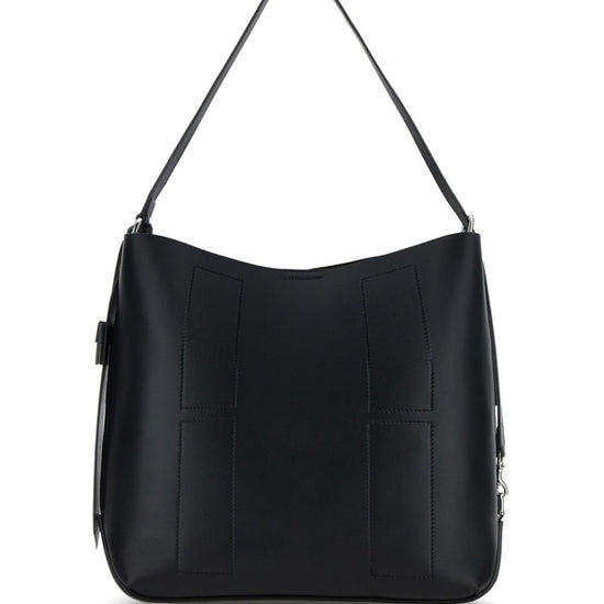 Black calf leather magnetic fastening adjustable shoulder strap main compartment removable pouch hocket medium leather hobo bag