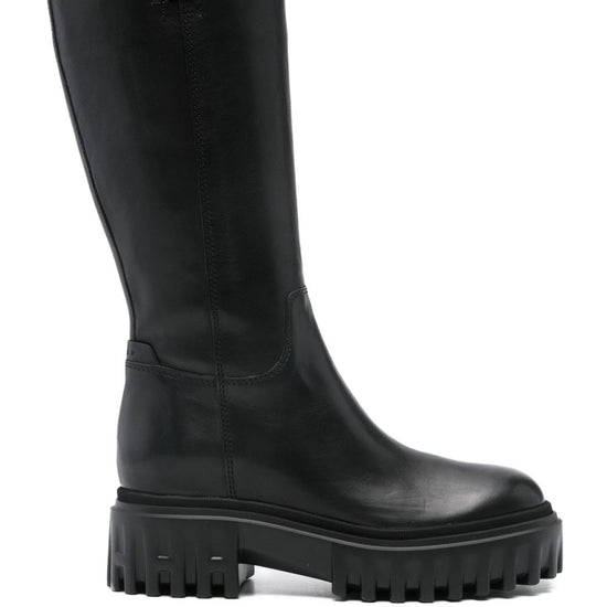 Black side zip fastening round toe chunky sole mid-calf height h700 leather boots