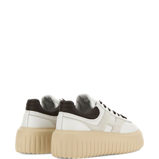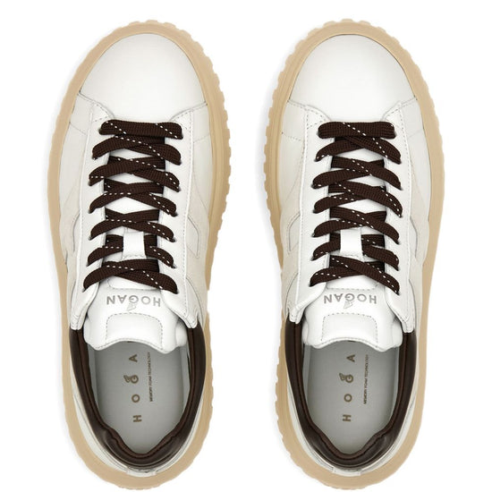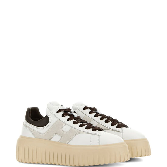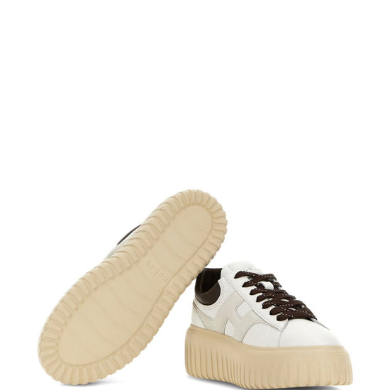 White lace-up fastening signature h logo platform sole ridged sole h-stripes leather sneakers