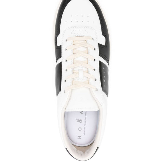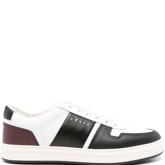 White/black/coffee brown calf leather smooth grain perforated toebox logo-debossed tongue logo print to the side front lace-up fastening round toe branded insole flat rubber sole h668 leather sneakers size and fit - heel 1,2 in / 3 cm; platform 1 in / 2,5 cm