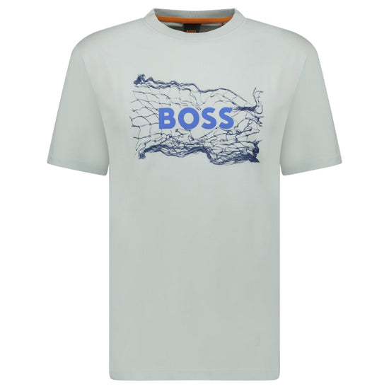 elevate your wardrobe with the boss light blue cotton jersey artwork t-shirt. a refined staple that blends premium craftsmanship with everyday versatility.