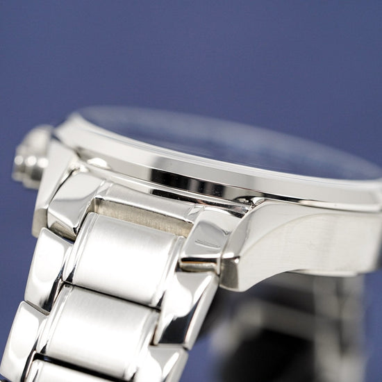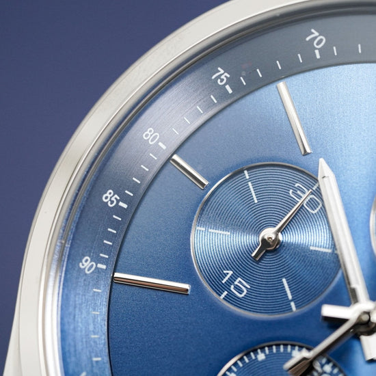 the striking blue dial, accented with silver-tone hands and indices, captures attention with its refined elegance. the chronograph functionality offers both style and practicality, allowing you to time your activities with precision. housed in a durable stainless steel case and paired with a sleek, matching bracelet, this watch is built to withstand the demands of daily wear while maintaining a polished appearance.
