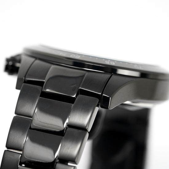 black pvd plated stainless steel bracelet with push button deployment clasp.