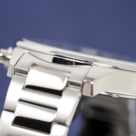 - black sunray dial – features **three chronograph subdials, silver-tone hands, and luminous markers** for superior readability.