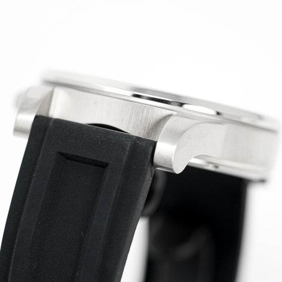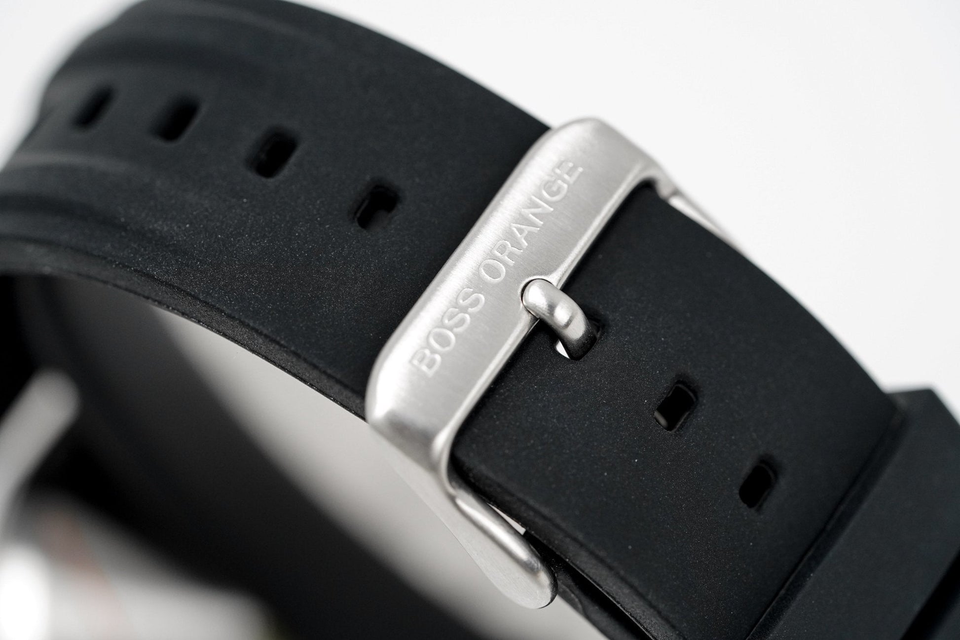 black rubber strap with stainless steel pin buckle.