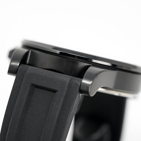 black rubber strap with stainless steel pin buckle.