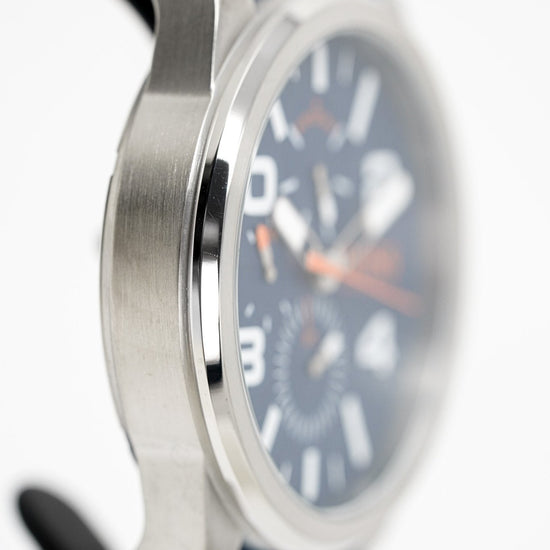 japanese made quartz movement. day and date subdials with 24 hour subdial.