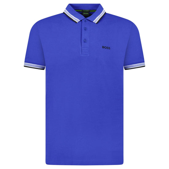 the boss paddy polo shirt in blue is a refined addition to your smart-casual wardrobe, offering both versatility and effortless style. ideal for office wear or weekend outings, this polo features a sleek solid colourway complemented by a contrasting boss logo on the chest for a subtle yet distinguished finish.